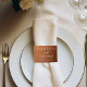 Follow the autumn trend of earthy tones with our burnt orange to brown gradient fall wedding napkin band. Simple white typography on a rustic background for a minimalist look. Bohemian hues reminiscent of terracotta clay highlight your elegant calligraphy on this trendy color fade wrap.