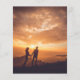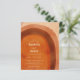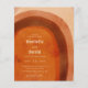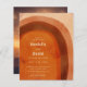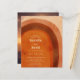 Boho style budget wedding invitation with an abstract arch painted in earthy desert colors of burnt orange, terracotta, rust and brown. Your wedding details are in a modern layout along with your names in a retro style font for a fun twist. The back has your favorite photo.