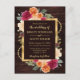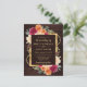 Gorgeous Rustic Watercolor burnt orange and red fall autumnal flowers floral design on a brown wood background with gold foil border