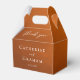 Follow the autumn trend of earthy tones with our burnt orange to brown gradient fall wedding favor box. Simple white typography on a rustic background for a minimalist look. Bohemian hues reminiscent of terracotta clay highlight your elegant calligraphy on this trendy color fade box.