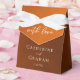 Follow the autumn trend of earthy tones with our burnt orange to brown gradient fall wedding favor box. Simple white typography on a rustic background for a minimalist look. Bohemian hues reminiscent of terracotta clay highlight your elegant calligraphy that reads With Love on this trendy color fade box.