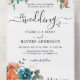 Rustic Burnt Orange Teal Rust Floral Wedding RSVP All In One Invitation