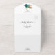 This teal and rust orange wedding all in one invitation is designed with an easy to tear off perforated RSVP postcard. Simply fold the card, seal and send (no envelope needed).