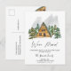Rustic cabin in the wood watercolor trees moving announcement postcard