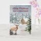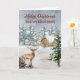 Merry Christmas for grandson card with a charming scene of a rustic country cabin in the forest with a deer in the snow and thoughtful verse.