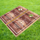 Personalized rustic style cornhole set for a cabin rental property, Airbnb, vacation lodge, or b&b. Featuring a wood plank background (image printed), the established year, location, city and state, and the name of the place. Edit the text to add any custom text you'd like to include and surprise your guests with outdoor games. This design features a illustration with mountains, a camp fire, and trees.