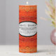 Rustic Candle Company Supplies Pillar Candle. Black, white and rustic orange pattern background. Create your own Pillar Candle. Part of our Candle Making Supplies to help you make your own candles, and grow your business! Are you making something for a wedding, birthday, Mother's Day, Father's Day, a graduation, Cinco De Mayo, Memorial Day, 4th of July, back to school, Halloween, Thanksgiving, Christmas, or adding your family name for a customized gift? You can use this free template designs to help you create your own special gifts! (Not available for commercial use). You can even add your photo if you prefer.