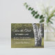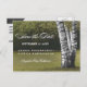 Rustic Carved Birch Tree Country Save The Date Postcards - features a grove of birch trees. Design also features an element where you can carve initials into the main tree. The background features a woodsy landscape in shades of green with elegant fonts. See the entire matching collection below.