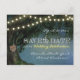 Rustic Carved Oak Tree Wedding Save The Date Cards - feature a star background with a rustic grandfather oak tree that has a carved heart. You can customize the carved initials to your very own. This design also features string lights at the top and "Wedding Celebration" in a similar glowing text.