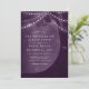 Rustic Carved Tree String Light Purple Wedding Invitation