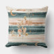 Rustic celestial stripe pattern throw pillow featuring moon phases, sun symbols, and tribal-inspired details in earthy teal and clay tones. A calm, grounding design ideal for boho lovers, spiritual creatives, and nature-inspired interiors. A thoughtful gift for moon watchers, astrology fans, and earthy souls.