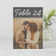 Bold chalk-style calligraphy and a dark chalkboard background frame your favorite photo on this rustic wedding table number card. The vintage chalkboard look pairs perfectly with barn, vineyard, and outdoor reception settings. To customize, type in the table number, click Change by the default photo to upload your own, and add that individual table number card to your shopping cart. Repeat for all of the table numbers that you need.