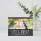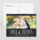 This rustic photo thank you postcard features the text "Love and thanks" in a handwritten-style font against a chalkboard background. Personalize with one of your favorite wedding photos.