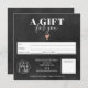 Rustic black chalkboard simple square gift certificate, add your logo, with a rose gold heart. Perfect birthday or Christmas gift certificate voucher.