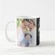 Rustic Chalkboard Two Photo Blue Father's Day Mug. Customizable father's day mug featuring rustic typography and faux chalkboard background. Personalize by adding two of your favorite photos and adding your own details. Matching items are available.