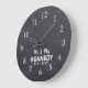 Wedding clock with a rustic chalkboard background. Personalize the farmhouse style clock with last name of the new couple for an unique weddiing anniversary gift.