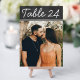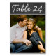 Bold chalk-style calligraphy and a dark chalkboard background frame your favorite photo on this rustic wedding table number card. The vintage chalkboard look pairs perfectly with barn, vineyard, and outdoor reception settings. To customize, type in the table number, click Change by the default photo to upload your own, and add that individual table number card to your shopping cart. Repeat for all of the table numbers that you need.