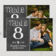 Chalk-style calligraphy and a large photo on a dark chalkboard background create a charming rustic wedding table number card. The couple's names and wedding date are displayed in decorative lettering beneath the photo. To customize, type in the table number, click Change by the default photo to upload your own, and add that individual table number card to your shopping cart. Repeat for all of the table numbers that you need.