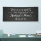 Custom name and wedding date welcome to our wedding sign with rustic country chalkboard pattern and vintage style handwritten lettering. A perfect personal touch for your rustic or woodland wedding.