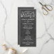 "Welcome to the Wedding Of" shines in charming white lettering against a rustic chalkboard background on this fun ceremony program. A mix of playful and elegant typography creates a warm, inviting feel, accented by decorative scroll flourishes. The front and back of this flat program card is fully customizable for your bridal party, ceremony order, and a personal thank you message.