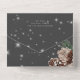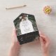 AVAILABLE WITH OR WITHOUT A QR CODE TO SCAN. This design features a rustic green pine and pinecone bouquet on a soft charcoal black background with white flowers. It is accented with a white sparkle overlay to illustrate the magic of the beautiful winter holidays. Perfect for a Christmas or winter wedding. Personalized All-In-One invitations are a unique combination of both a beautifully printed custom invitation with an easy to tear off perforated RSVP postcard. And they are so easy to use! You simply fold, then seal the back flap with the three included clear stickers, and mail. And when your guests receive your custom invite, they just tear the perforated RSVP Card off and drop it back in the mail to you!