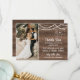 A perfectly rustic wedding thank you card, featuring string lights, mason jars, and a wood look background.