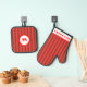 Add some country style to your kitchen with these Rustic Charm Red Striped Oven Mitt & Pot Holder Sets. The stripes in three captivating shades of red create a pleasing visual effect against the white customization areas, which are outlined in a complementary shade of red. A personalized red monogram letter on the hot pad and custom text at the bottom of the oven mitt add a unique touch, making these sets perfect for a personal gift. Available as a set or individually - you can choose to get just an oven mitt or just a pot holder. Order yours today to add sophistication to your kitchen or to brighten the day of a friend or loved one with a thoughtful, personalized present.