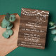 Plain white envelopes are included with paper invitations and will come to fit the invitation size you select. If you don’t need the envelopes, you may choose to not receive them by selecting the dropdown below "Envelopes" and choosing "None." If you’d like to have a design on your envelopes, you can browse all of these available envelopes to find the design that complements your Rustic Charm String Lights Couples Shower Invitation.