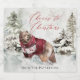 Celebrate the Christmas season with custom sparkling wine labels personalized with your name or other desired text. This design features a snowy winter scene with a large grizzly bear wearing a deep red woolen sweater out in the cold snowy landscape. Fir trees covered in snow depict a winter wonderland. A lovely vintage style typeface spells out the words "Cheers to Christmas". These labels are a wonderful choice for creating personalized gifts for friends, neighbors, family, customers and business colleagues. It makes a thoughtful hostess gift for attending holiday parties or dropping in on friends and family during the Christmas holiday season.
