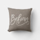 Rustic Chic Believe Typography Script Linen Look Throw Pillow