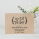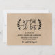 These rustic chic faux kraft elopement announcement cards have a beautiful trendy design. The card reads "we tied the knot". The design features fun hand lettered typography with delightful loops and swirls surrounded by a simple olive branch wreath.