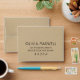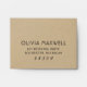 Custom A2 wedding RSVP envelopes feature stylish black reply address text and a background printed with a rustic kraft brown paper textured appearance.