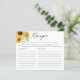 Rustic Chic Sunflower Bridal Shower Recipe Card