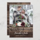 This rustic Christmas Barn Wood wedding Save the Date is perfect way to announce your upcoming wedding to your friends. The design features beautiful watercolor white and burgundy florals with pine, holy berry and eucalyptus greenery on a wood background. This is a perfect color scheme for a winter wedding. Make this save the date your own by including your photo names and all of your wedding details. For further customization, use the advanced design tool to modify this template.