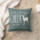 Rustic Christmas Blue Buffalo Plaid Throw Pillow - with hand lettered text that reads "holiday Cheer" with a deer and personalized with your family name. A perfect addition to your country Christmas decor. Pillow is part of a collection.