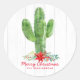 Rustic Christmas Cactus White Wood Holiday Classic Round Sticker