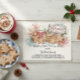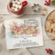 Soft watercolor hues of red, beige, green, and blue blend beautifully with festive details like pinecones, holly, and sprigs of evergreen — creating a cozy, homemade feel that’s perfect for cookie exchanges, holiday parties, or festive gatherings.