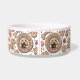 This charming dog-themed Christmas bowl features hand-drawn gingerbread cookie illustrations. The centerpiece of this design is a large, round gingerbread cookie that doubles as a frame for your dog's photo, surrounded by cute dog bone cookies, paw print cookies, pinwheel cookies, and more.