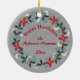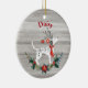Rustic Christmas Dalmatian Dog Antlers Greenery Ceramic Ornament Will be the highlight of your tree. A playful Dalmatian wearing ornaments on his pretend antlers looks up as if he is watching for Santa. Beautiful holiday greenery holly, pine and poinsettia in Christmas reds and greens decorate the bottom of the ornament.All of this on a gray rustic wooden texture background. Change the dog's name to your pup's. The back of the ornament has a wreath of the same greenery on a texture of gray kraft paper and has the saying "Happy Howlidays and also "the Anderson Humans" and the year to edit and make it your own . This text as well as all of the text on this ornament is editable with the personalize tool. Make your Dalmatian proud and get several of these to sprinkle around your tree. This ornament as well as matching napkins and paper plates for your holiday parties are in our "HAPPY HOWLIDAYS DOG" COLLECTION in our store.