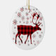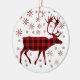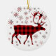 Rustic Christmas Moose deer elk red black plaid Ceramic Ornament