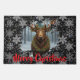 Rustic Christmas moose winter snowy woodland forest door mat.