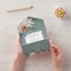 AVAILABLE WITH OR WITHOUT A QR CODE. This design features green pine sprigs, red berries, white poinsettias, and holiday greenery on a Christmas light green background. A monogram on the back envelope flap completes the simple but elegant look of this all in one invitation. Add a QR code to your invitation so that gusts can quickly access your wedding Website for details, directions, menu options, and more, or add your gift registry Web URL. Personalized All-In-One invitations are a unique combination of both a beautifully printed custom invitation with an easy to tear off perforated RSVP postcard. And they are so easy to use! You simply fold, then seal the back flap with the three included clear stickers, and mail. And when your guests receive your custom invite, they just tear the perforated RSVP Card off and drop it back in the mail to you!