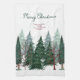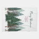 This festive "Merry Christmas" holiday design features a rustic chic winter scene from a Christmas tree farm. Personalize with your choice of greeting, your family's last name. Original artwork by Caroline Bonne Müller