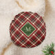 Rustic Christmas Plaid Green Monogram Name Holiday Round Pillow