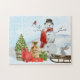 Rustic Christmas Scene Snowman, Snow, Tree Jigsaw Puzzle