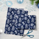 This cute Christmas tissue paper features a pattern of frosty white Christmas elements with a dark blue rustic wood background.