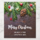 Rustic Christmas Table with Pine & Snow Holiday Wine Label