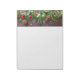 A notepad with a rustic photograph of a brown wooden table with pinecones, pine needles, snow, and Christmas ornaments. Festive and lovely.