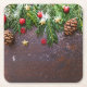 Rustic Christmas Table with Pine & Snow Square Paper Coaster