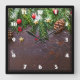Rustic Christmas Table with Pine & Snow Square Wall Clock